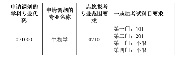 生物学(071000)从第一志愿报考生物学(0710)专业A类等级学科(以教育部第四轮学科评估结果公布为准https://www.cdgdc.edu.cn/dslxkpgjggb/)的考生中,依照等级按初试总成绩从高到低进行调剂。